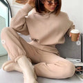 The European and American Autumn Women’s Knitted Fleece Casual Two-Piece Set combines comfort, style, and versatility for an effortless yet fashionable look. Here’s a detailed description to showcase its appeal: